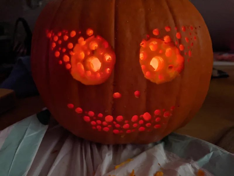 Pointillist pumpkin - apologies to anyone with trypophobia. Never used a drill to carve a pumpkin before!30 October 2021
