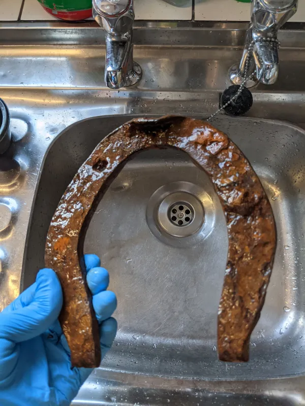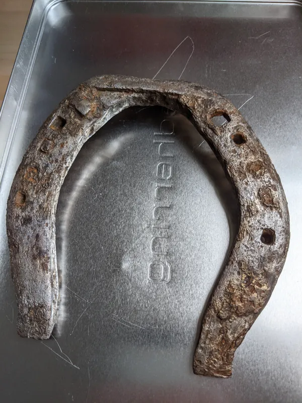 Trying to de-rust this horseshoe I found a few years ago. It was a limited success, but the bubble pattern is cool!11 May 2022
