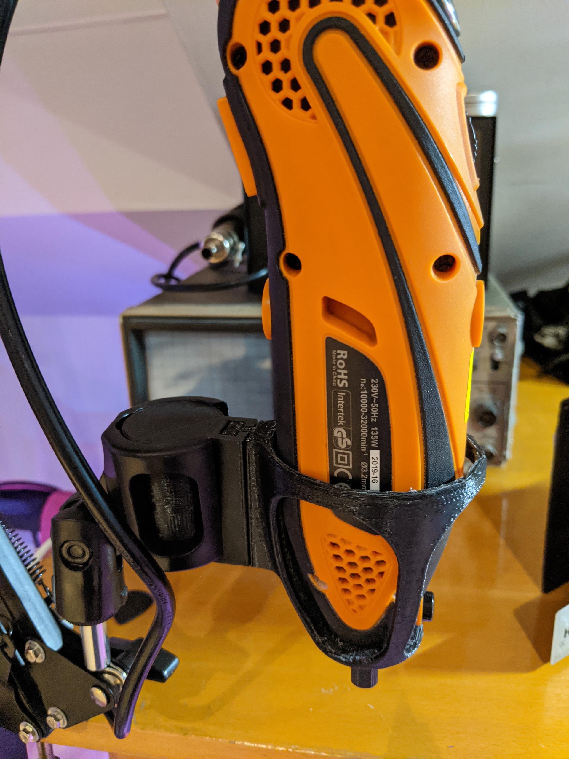 Published 22 January 20213dprinting3D printed modular jig for mounting my multitool to my microphone boom. Kinda dangerous to use, but quite satisfying to design.