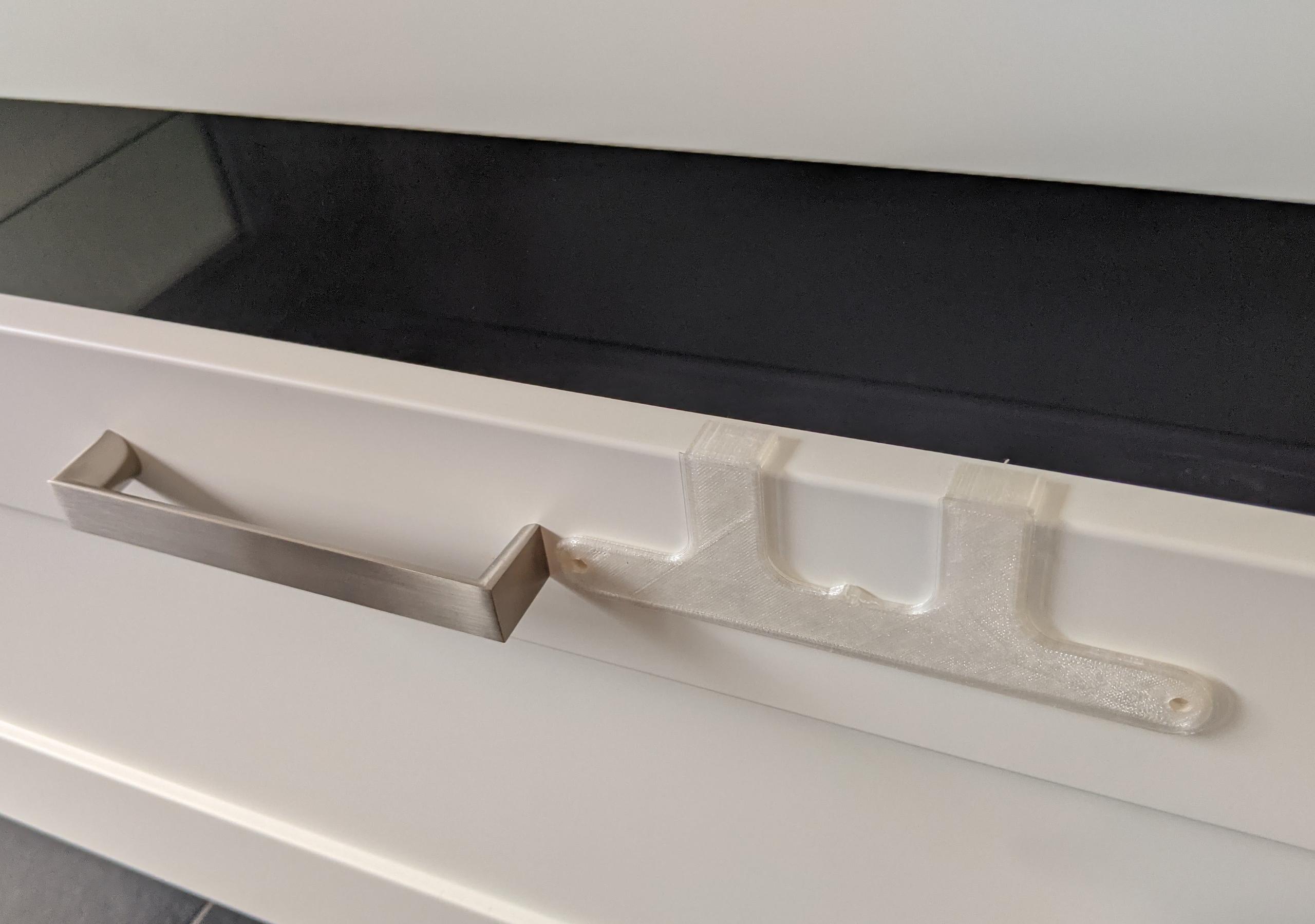 Published 30 June 20243D printed jig to help drill holes in the right places for handles on new kitchen units. This saved many, many hours of measuring!